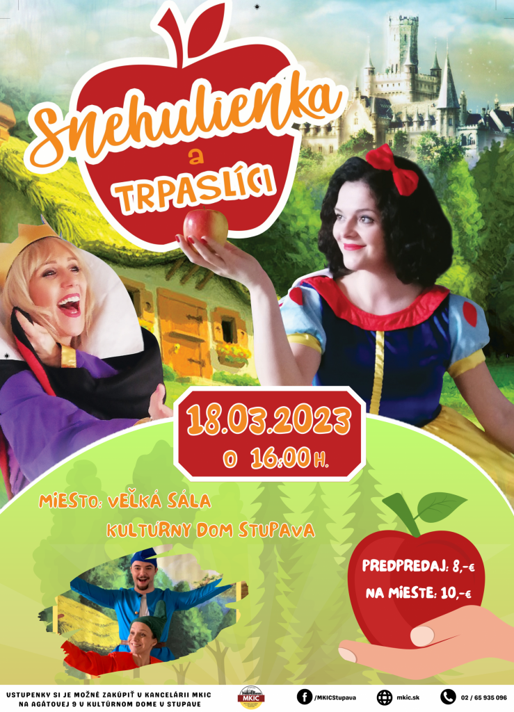 Čakajú vás veľkolepé spevácke a herecké výkony, mágia a čary, dych berúce napätie a samozrejme ešte Hapčí, Dudroš, Šťastko, Vedko, Spachtoš, Kýblik a ďalší roztomilí trpaslíci, ktorí sa s Vami budú interaktívne hrať!
